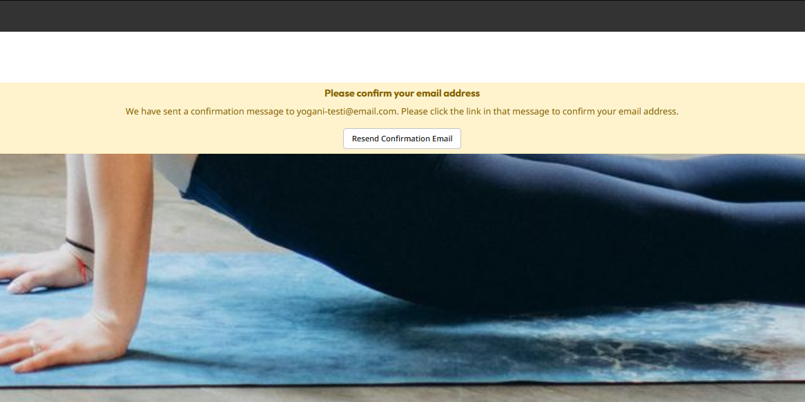 Olet nyt yogani.fi -tililläsi, mutta sinun pitää varmistaa sähköpostisi. Mene sähköpostiisi, jonka syötit kirjautumistietoihisi ja etsi sähköposti, jonka lähettäjä on Jenni-Sisko Kurttila